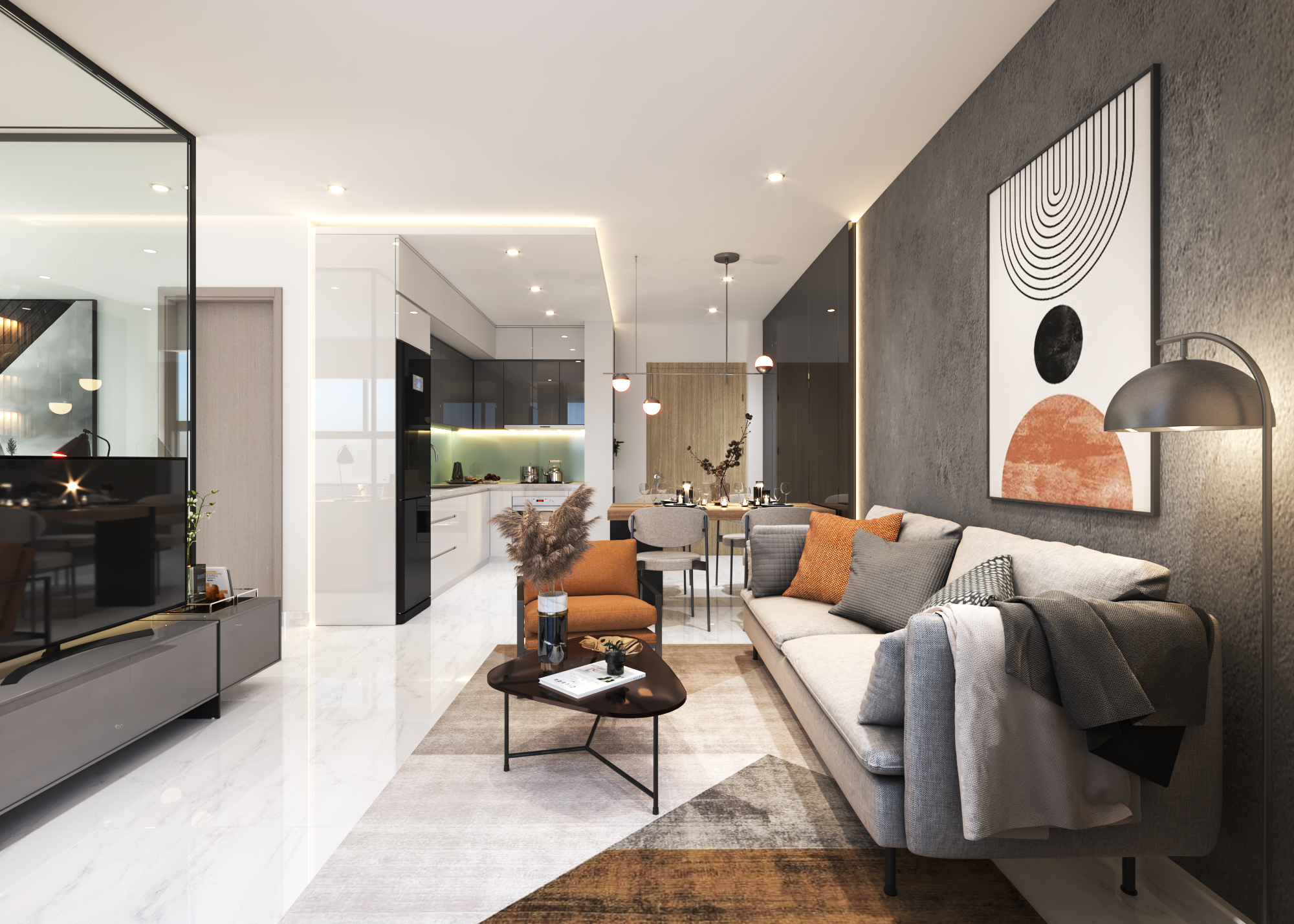 - Căn hộ có thiết kế hiện đại, trẻ trung và hài hòa với không gian xanh xung quanh.