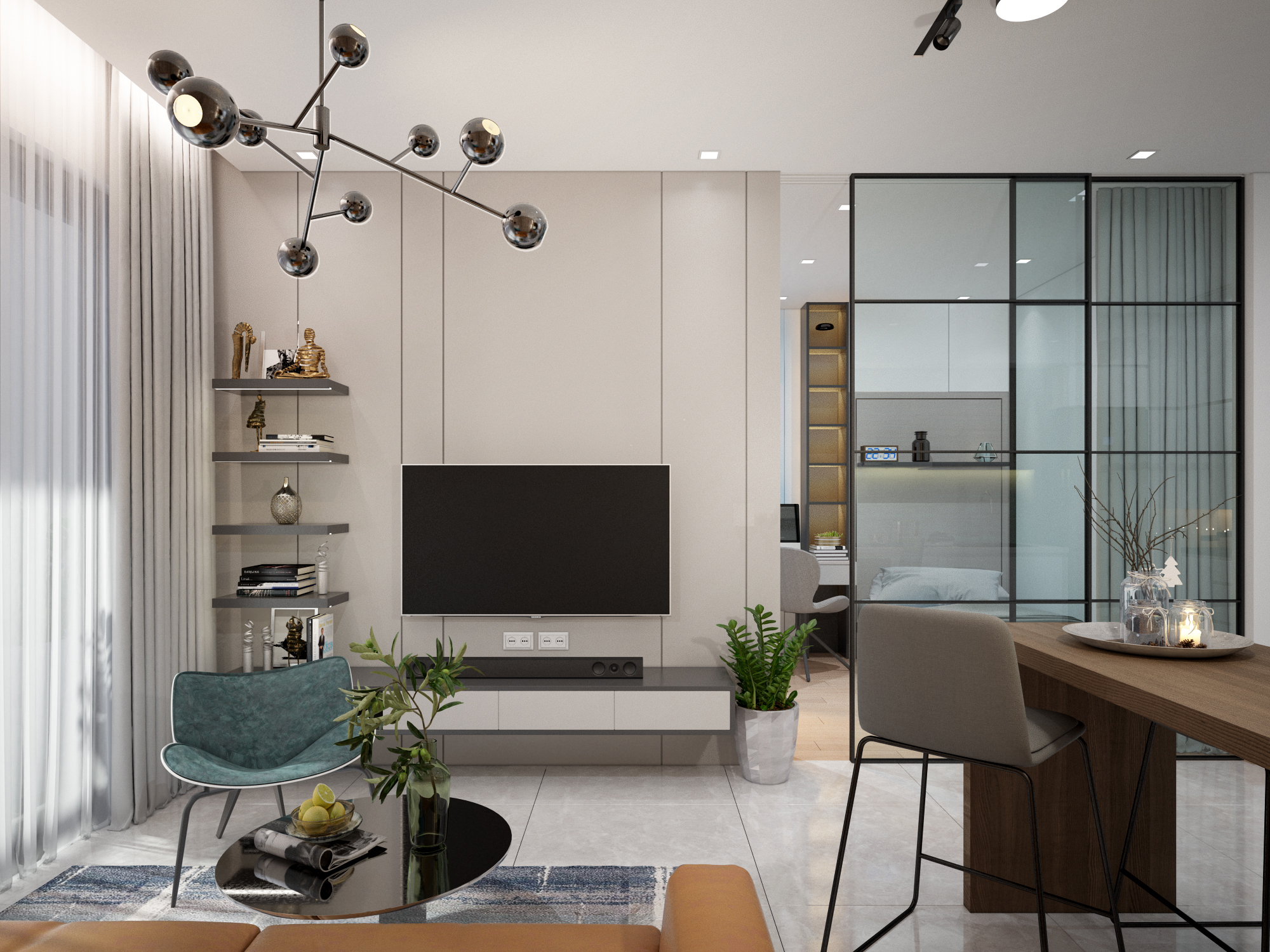 Căn hộ nằm ở gần sông, xung quanh cũng nhiều mảng xanh tươi tốt, nên việc đón ánh sáng tươi và gió sông tự nhiên sẽ mang đến cuộc sống khỏe mạnh cho gia chủ.